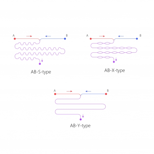 NanoMixer-Triplex X-type (Duplex strand like RNA) Microfluidic chip: ABC-X; ABC-XT;