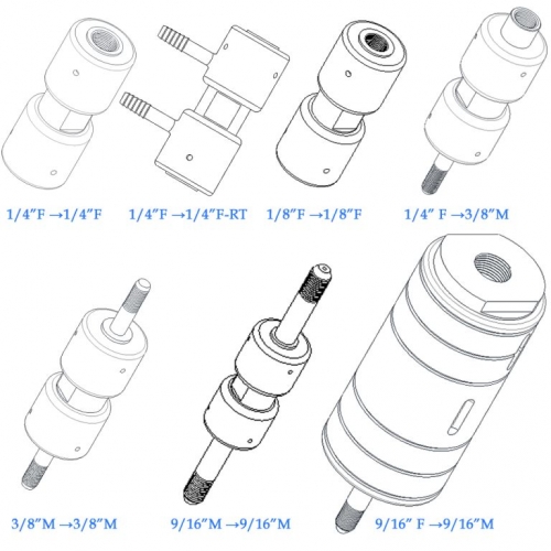 35mm × 35mm × 85mm (single-slotted) 45mm × 45mm × 200mm (multi-slotted) 95mm × 95mm × 300mm (9/16″ F→9/16″ M multi-slotted) |